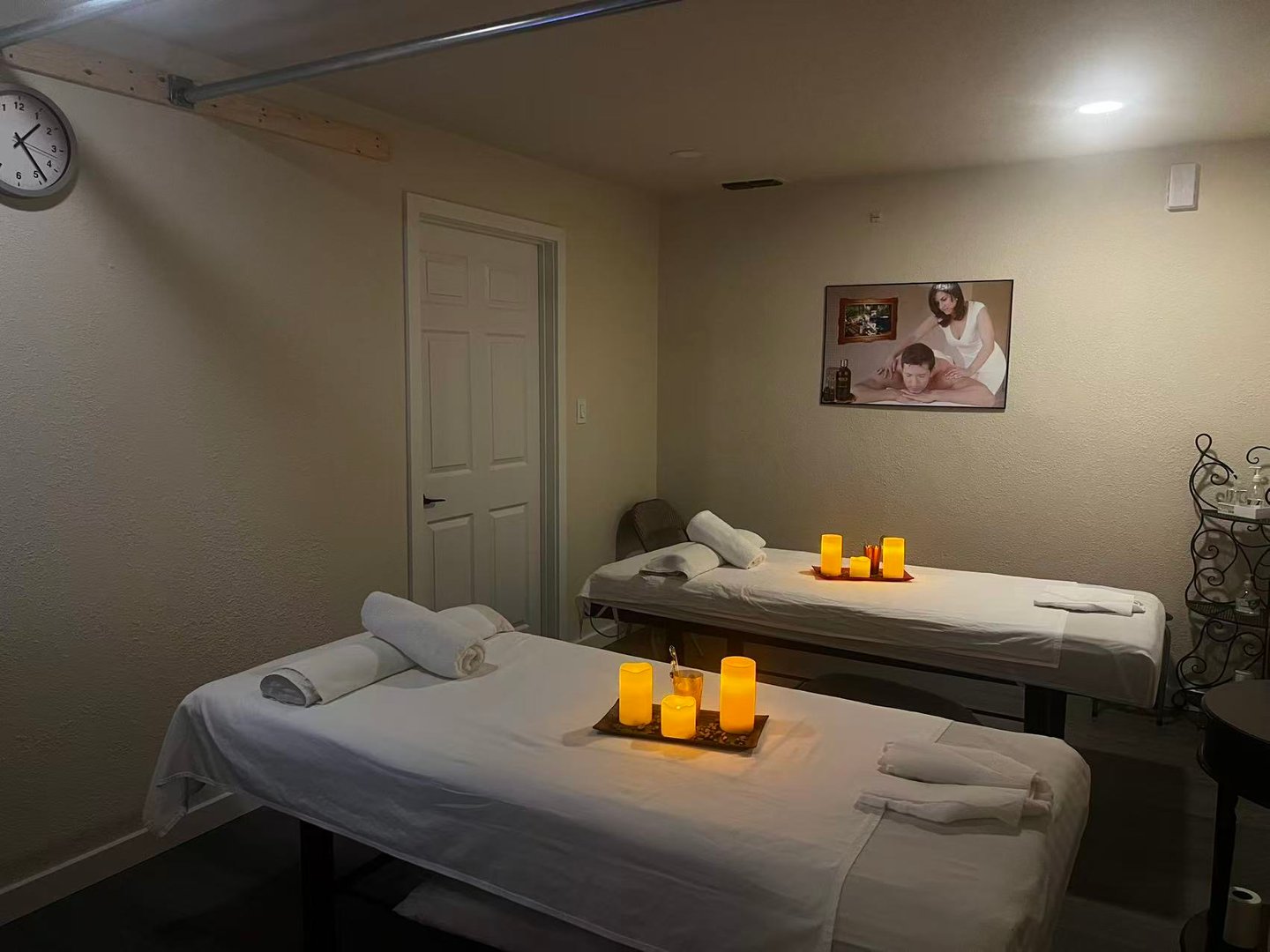A shared massage experience where two people enjoy treatments simultaneously in the same room.